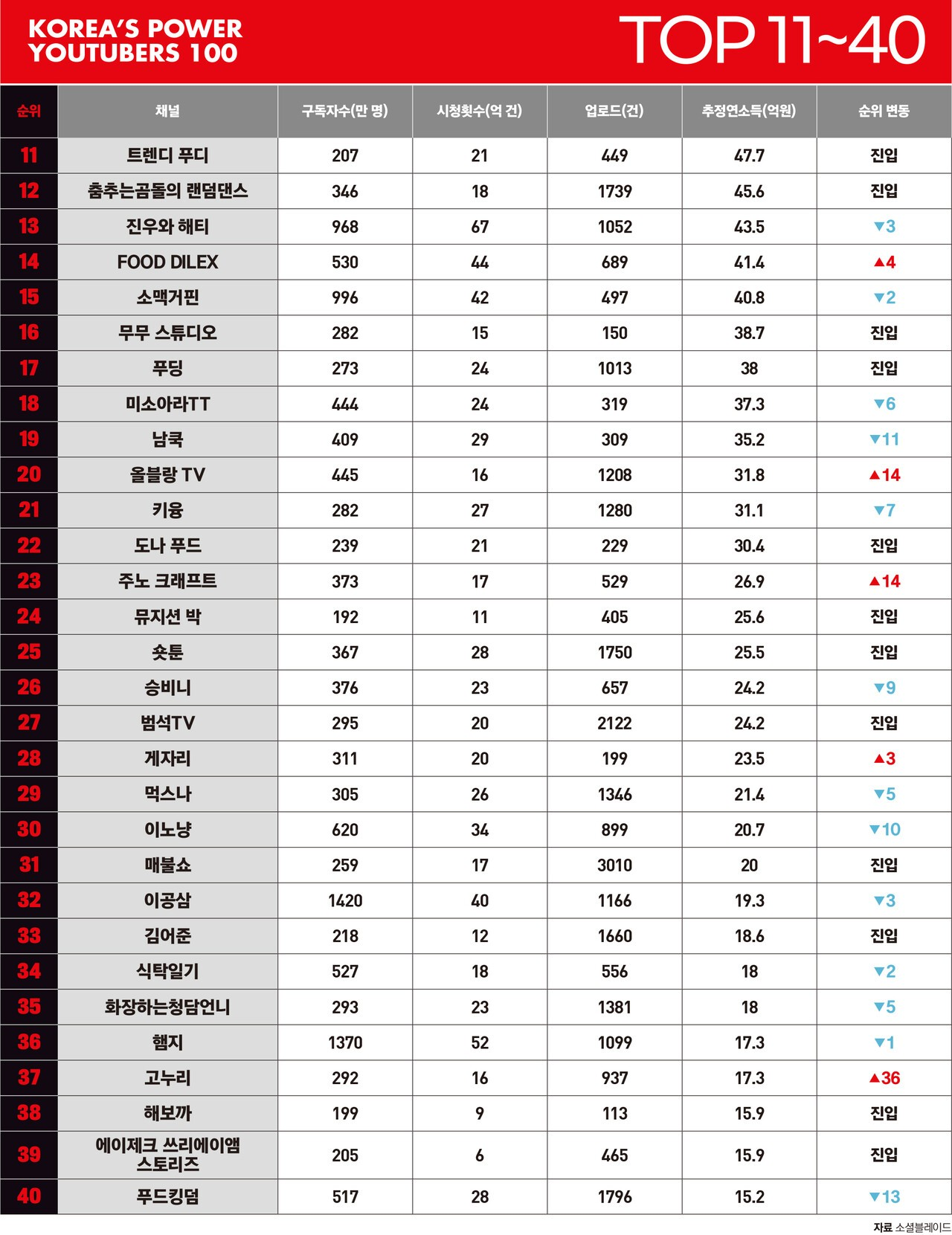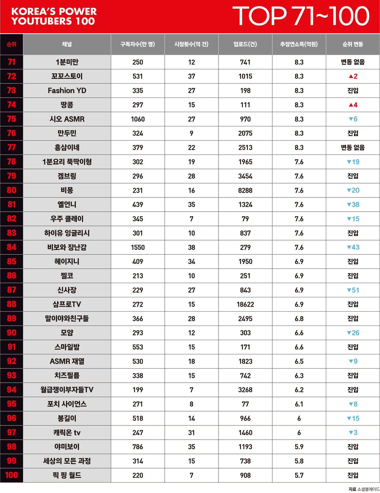 자유게시판 대한민국 상위 유튜버 100인 익명 744 views 3 링크복사 댓글 4 영어, 숫자, !@#$%^&*() 취소 댓글등록 익명 모르는 사람 태반이네 익명 근데 진짜 못들어본 사람 많네 알고리즘 편파가 이렇게 심한가 익명 이런 사람들은 얼마씩 벌까요? 익명 개부럽다 추천 동영상